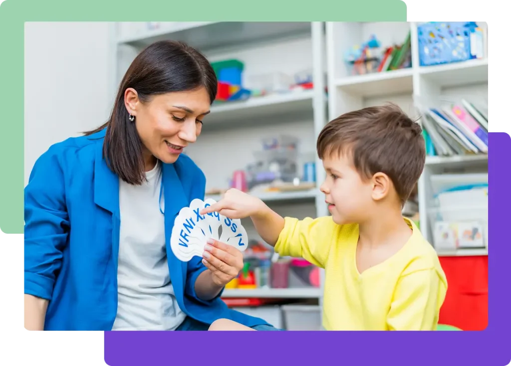Ajudamos crianças que estão desenvolvendo a linguagem, a fala ou que têm dificuldades para se expressar, ouvir ou entender.